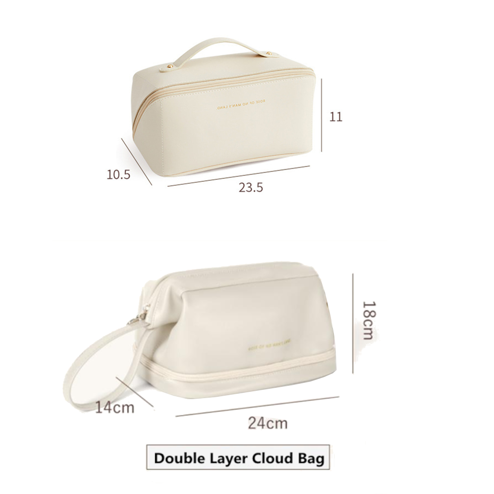 Double layer cloud cosmetic bag in creamy leather that's soft and premium like a cloud.
