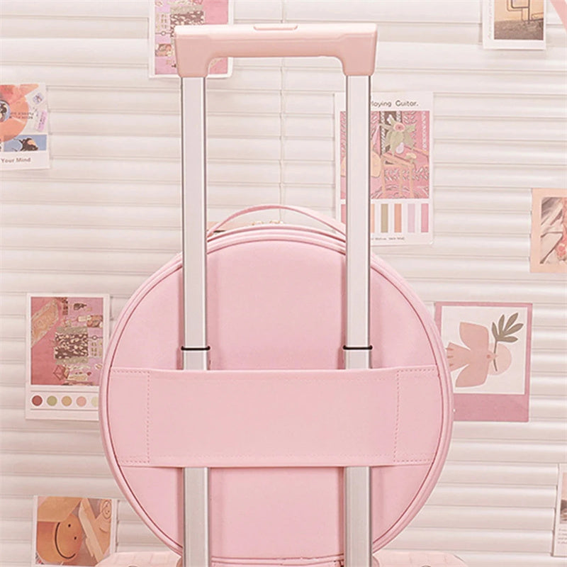 • 1 X Round Smart Led Makeup Bag With Mirror Lights Large Capacity Pu Leather Cosmetic Case