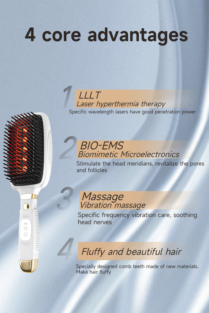 Revitalize Your Scalp And Enhance Your Hair’S Natural Vitality With This Advanced 3-In-1 Electric Massage Comb. Combining Red Light Therapy Ems Microcurrent Technology And Soothing Vibration Massage It Supports Healthier Follicles Promotes Circulation And Helps Create Stronger Fuller-Looking Hair.