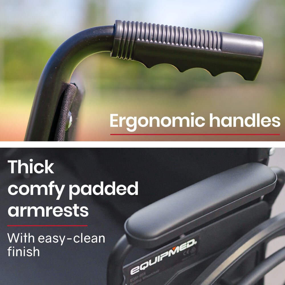 Equipmed Folding Wheelchair 24 Inch 136Kg Capacity Chair Retractable Armrests Black Wheelchairs