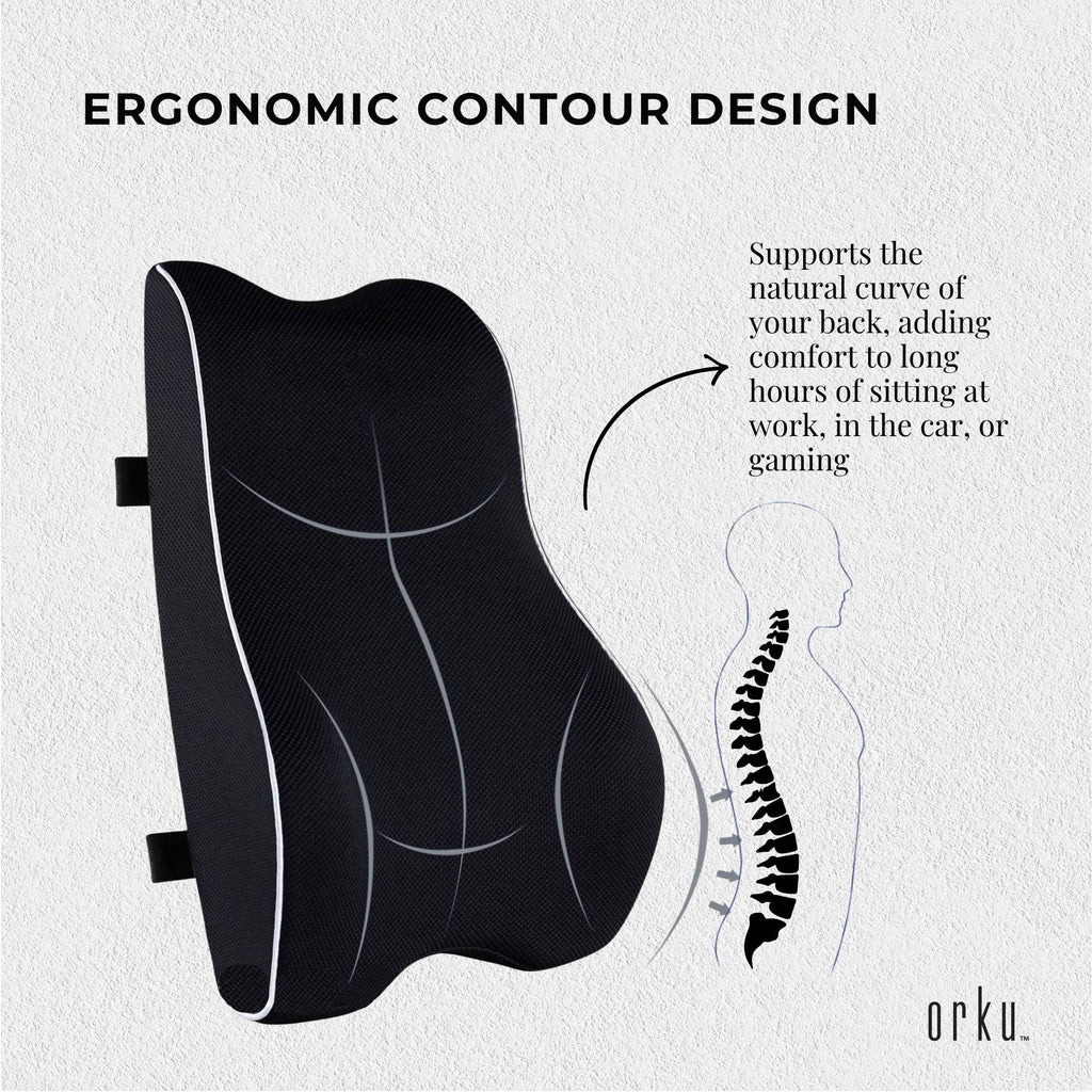 Orku Ergonomic Lumbar Cushion Memory Foam Back Support Car Office Gaming Chair Orthotics Braces & Sleeves