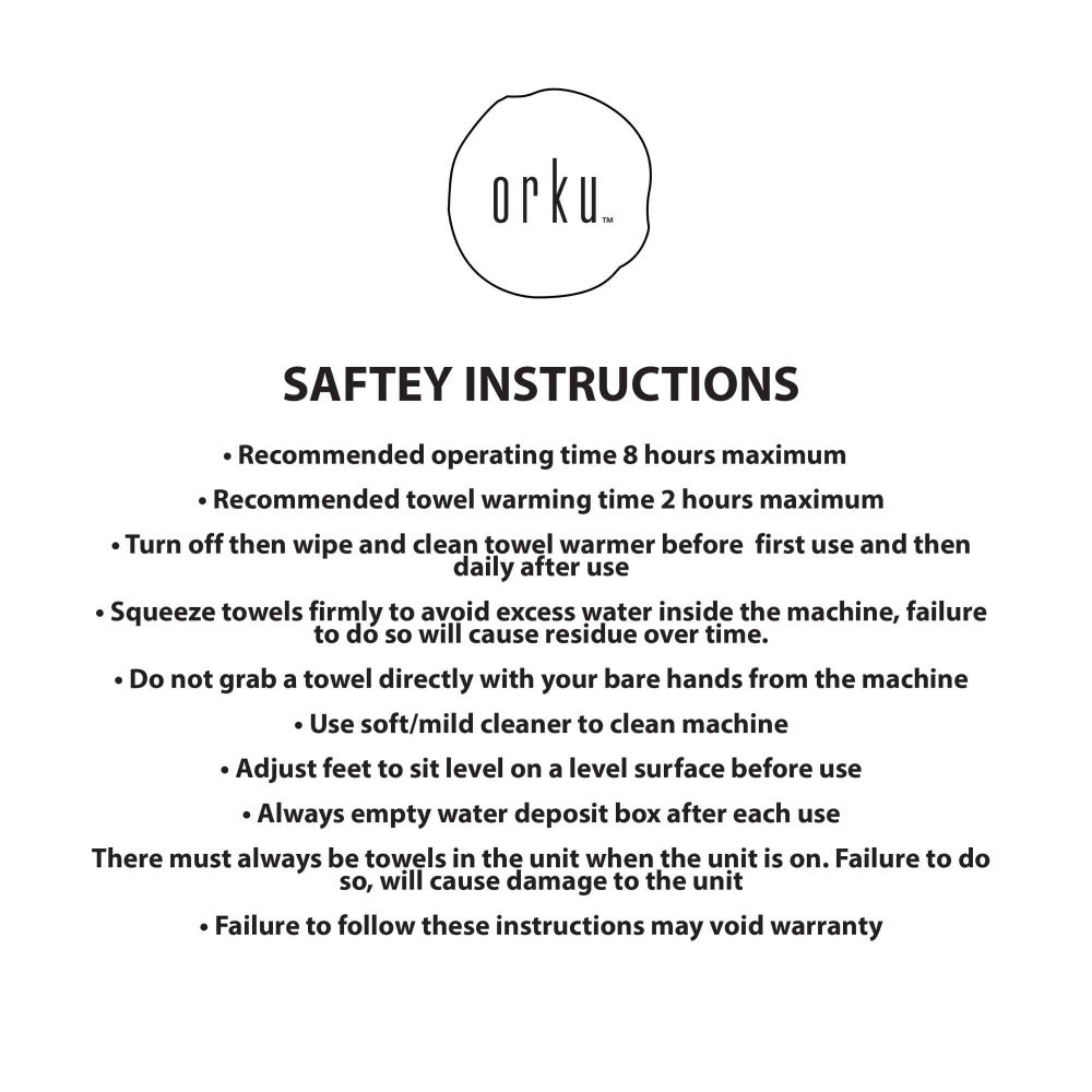 • Before your first use please use a slightly wet towel to clean the towel warmer before first time using the machine (new towel warmers come with iron powder on the seals and inside the machine for protection).