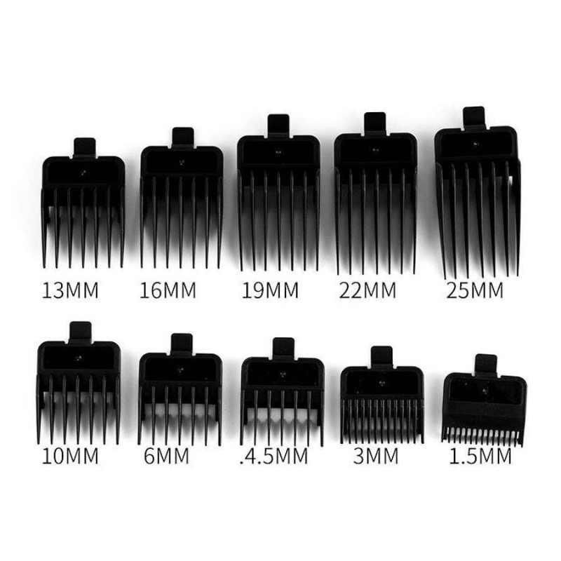 li>Equipped with 10 guide combs 1.5mm/3mm/4.5mm/6mm/10mm/13mm/16mm/19mm/22mm/25mm