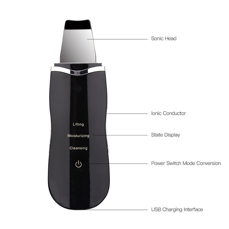 li>Super thin and compact appearance li>Ergonomic streamline handle li>User-friendly interface and touch screen li>Three working modes: cleansing moisturizing and lifting li>Adopts ultrasonic wave and nano technology li>Unique shovel type probe and high frequency vibration li>Multifunctional: deep cleaning introducing nutrient solution improving micro-circulation dredging sweat glands shrinking pores li>Convenient rechargeable design li>Long endurance ability: can be used for 3-4 days after full charge