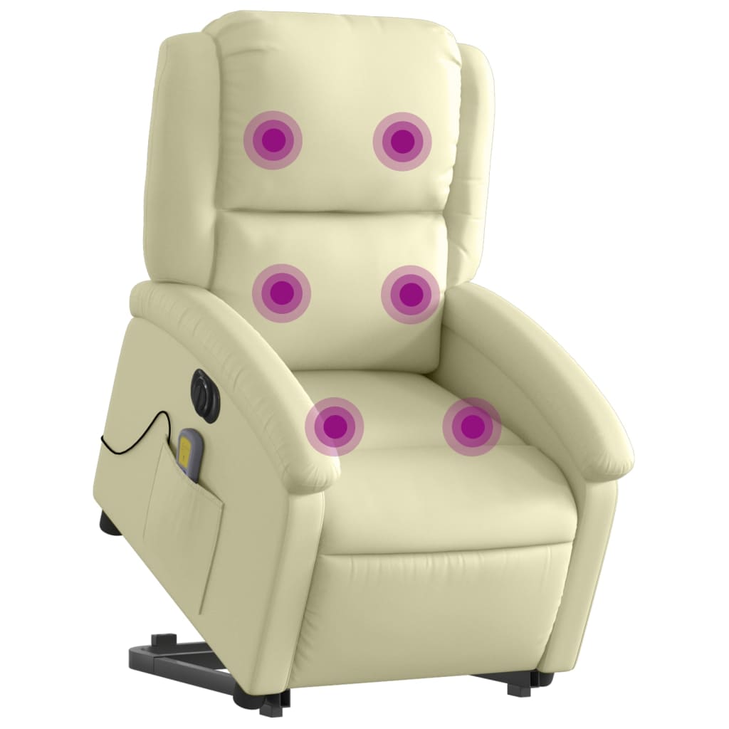Electric Stand Up Massage Recliner Chair Cream Real Leather Electric Massage Chairs