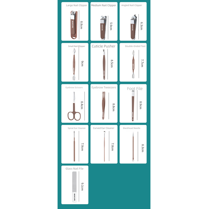 • Complete 13-Piece Set: This Professional-Grade Kit Includes A Full Range Of Tools For Manicures Pedicures Eyebrow Shaping Anti-Acne Care And Ear Cleaning Addressing All Your Personal Grooming Needs.