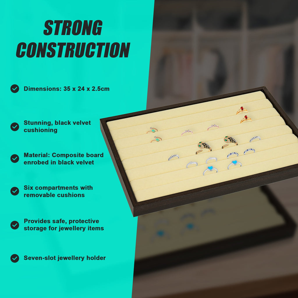 Br> Each Tray Features Seven Velvet-Covered Slots That Are Spaced To Securely Hold Rings Earrings And Other Small Jewellery Items In An Organised Manner. The Pieces Really Stand Out Against The Black Backdrop So It's Easy To See The Details Of Each Piece. If You've Got A Larger Jewellery Collection Multiple Trays Can Be Stacked To Provide Space-Saving Storage.