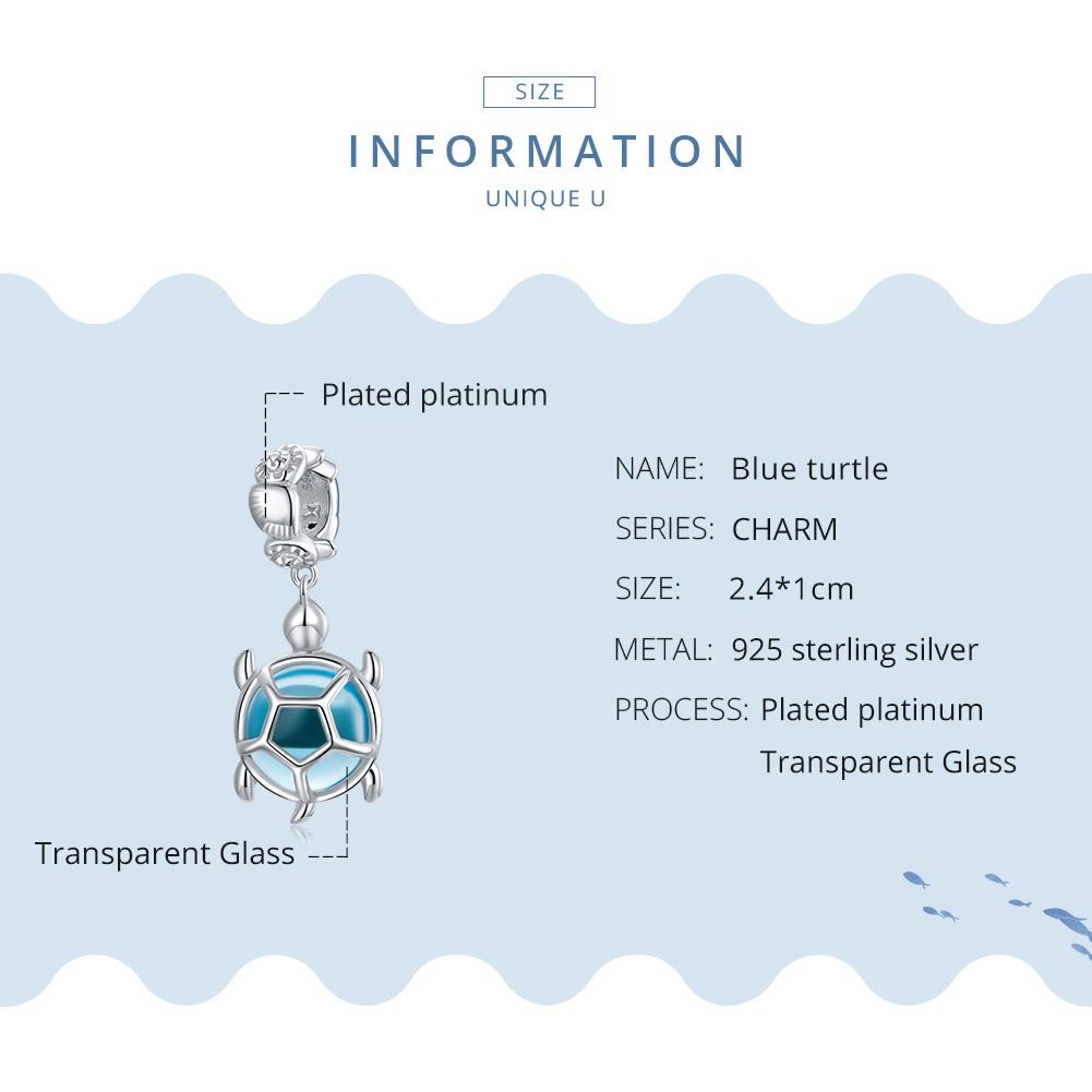 925 Sterling Silver Blue Turtle Pendant For Diy Bracelets & Necklaces Charms & Pendants