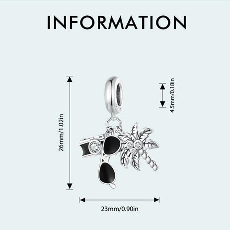 925 Sterling Silver Coconut Tree Camera Pendant Bracelet Charms & Pendants