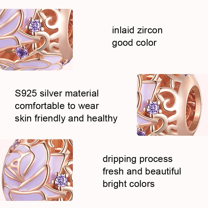925 Sterling Silver Purple Rose Beads For Diy Accessories Craft Beads