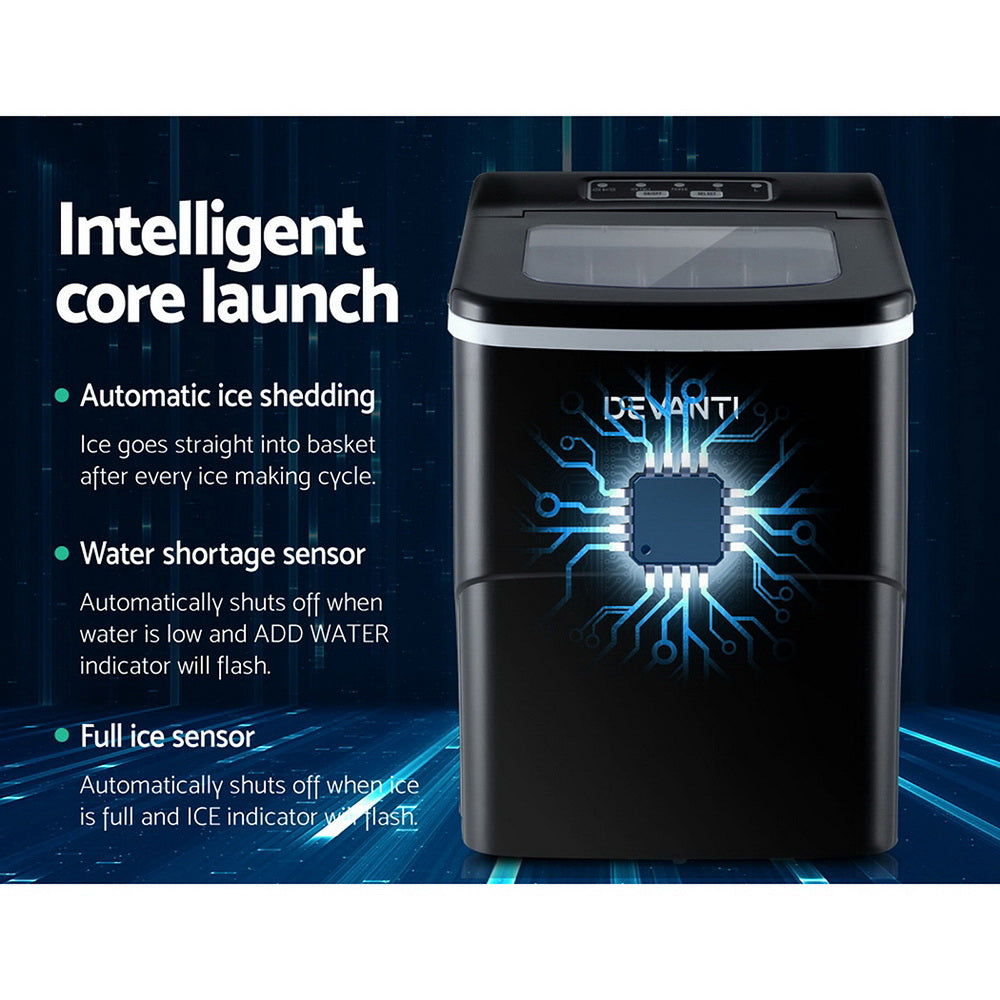 Devanti Ice Cube Maker Machine 2L Home Bar Benchtop Easy Quick Black Countertop Ice Makers