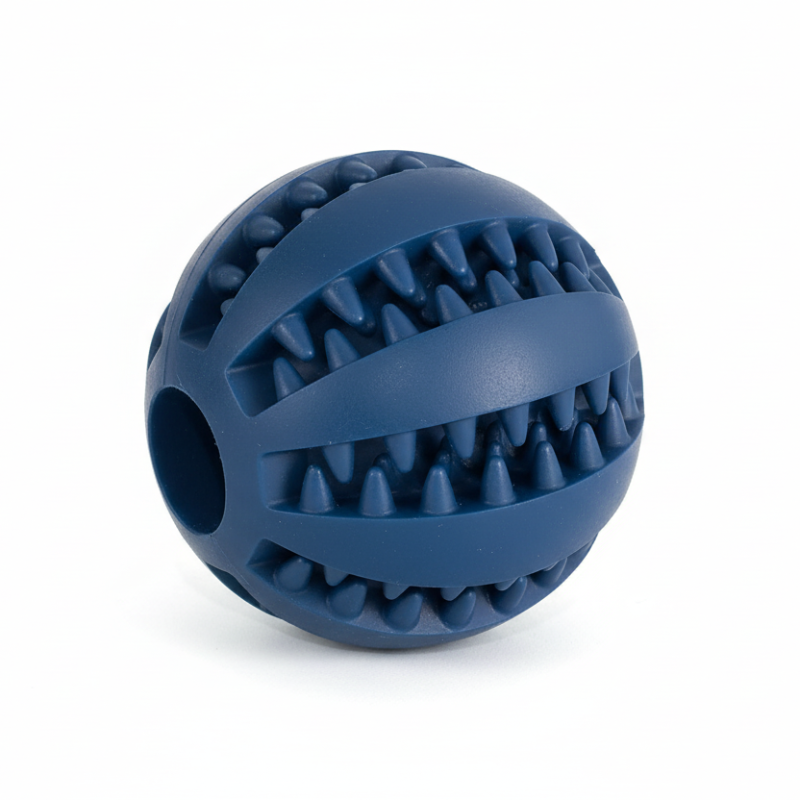Dog Chew Toy Rubber Ball Treat Dispenser Dental Cleaning Training Play Ball Dark Blue Spherical (Large) Dog Toys