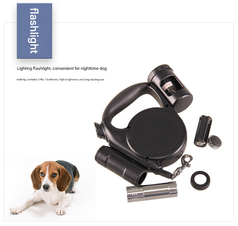 • 3-In-1 Multifunctional Design: Combines Retractable Lead Bright Led Flashlight And Waste Bag Dispenser For Streamlined Walks.