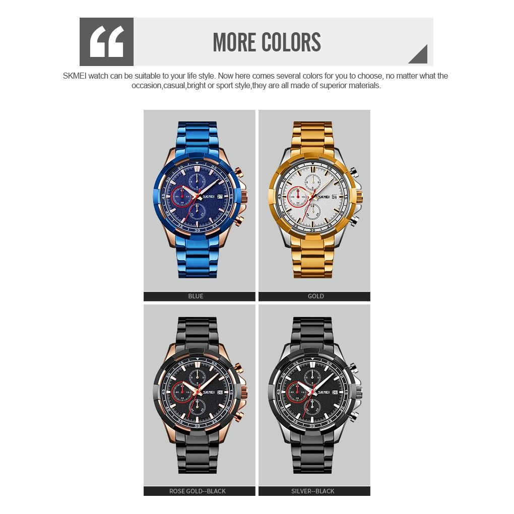Men Stainless Steel Quartz Watch With Luminous Calendar And Timing Blue Watches