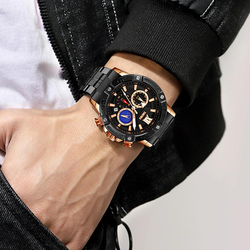 Stainless Steel Men Moonphase Quartz Watch With Strap Gold Black Watches