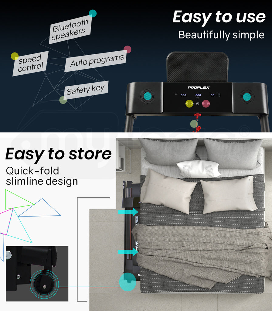 Proflex Treadmill Bluetooth Running Machine Foldable Small Compact Home Electric Treadmills