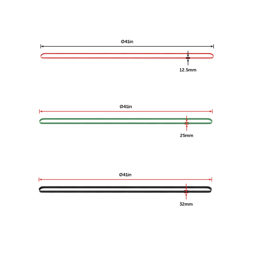 • Red (Extra Small): 41 Inch X 12.5Mm — Resistance: 10 To 50 Lbs