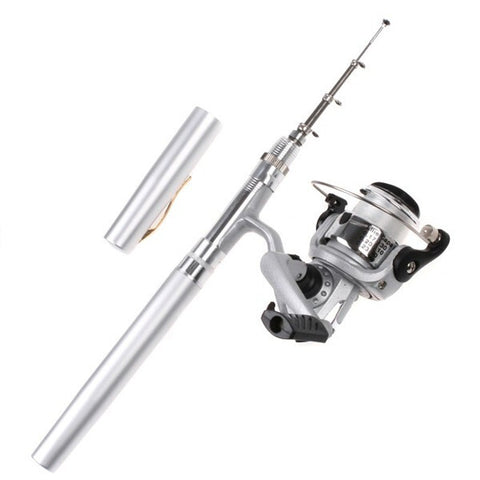 Pen Type Pocket Flexible Fishing Rod With Drum Reel Silver Rods & Poles