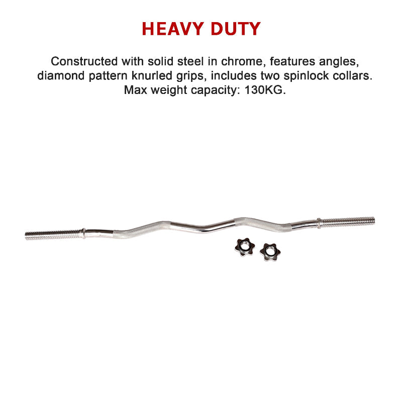 Curl Bar Solid Steel With Spinlock Collars For Biceps And Forearms Home Gyms