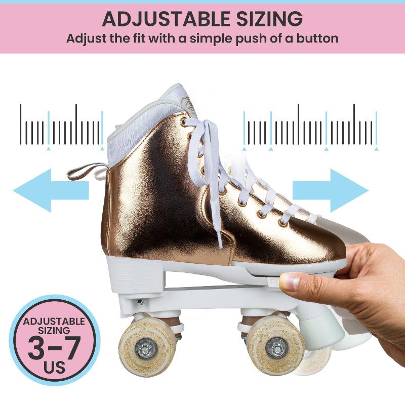 Skate Through The Streets With Great Flair Sporting Circle Societys Roller Skates! Featuring A Vibrant Design And Smooth-Rolling Polyurethane Wheels These Skates Are Perfect For Indoor And Outdoor Adventures. With An Easy-Push Button For Sizing (Us Sizes 3-7) And Abec 7 Sealed Bearings Youll Be Grooving Down The Rink With A Snug Fit And Reliable Performance. Plus Dual Front Brakes Ensure Safety And Control During Every Ride. So Whatre You Waiting For Strap On And Let The Good Times Roll!