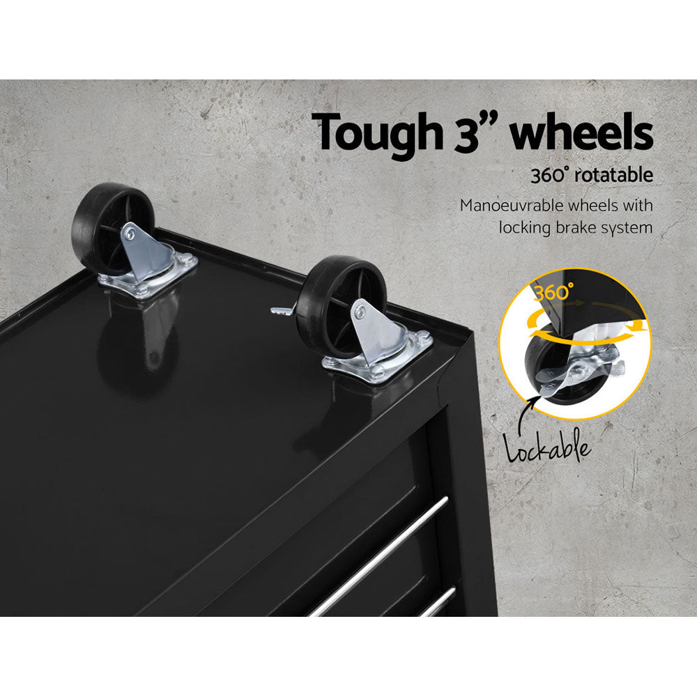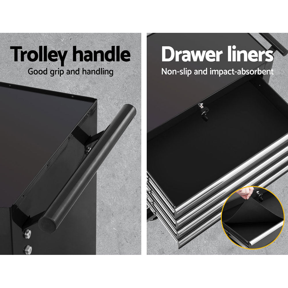 This Robust Multi-Drawer Giantz Tool Trolley Is An Essential For Any Workshop. Crafted From Durable Steel It Features Smooth Ball-Bearing Slides For Easy Access And A Secure Lock System For Safety. Its Spacious Design Accommodate Tools Of All Shapes Complete With Non-Slip Liners. The Chest Is Also Mounted On Omni-Directional Castors With Locakble Front Wheels Ensuring A Smooth Maneuverability And Stable Positioning. Sleek And Functional It's Perfect For Organizing And Protecting Your Valuable Tools.