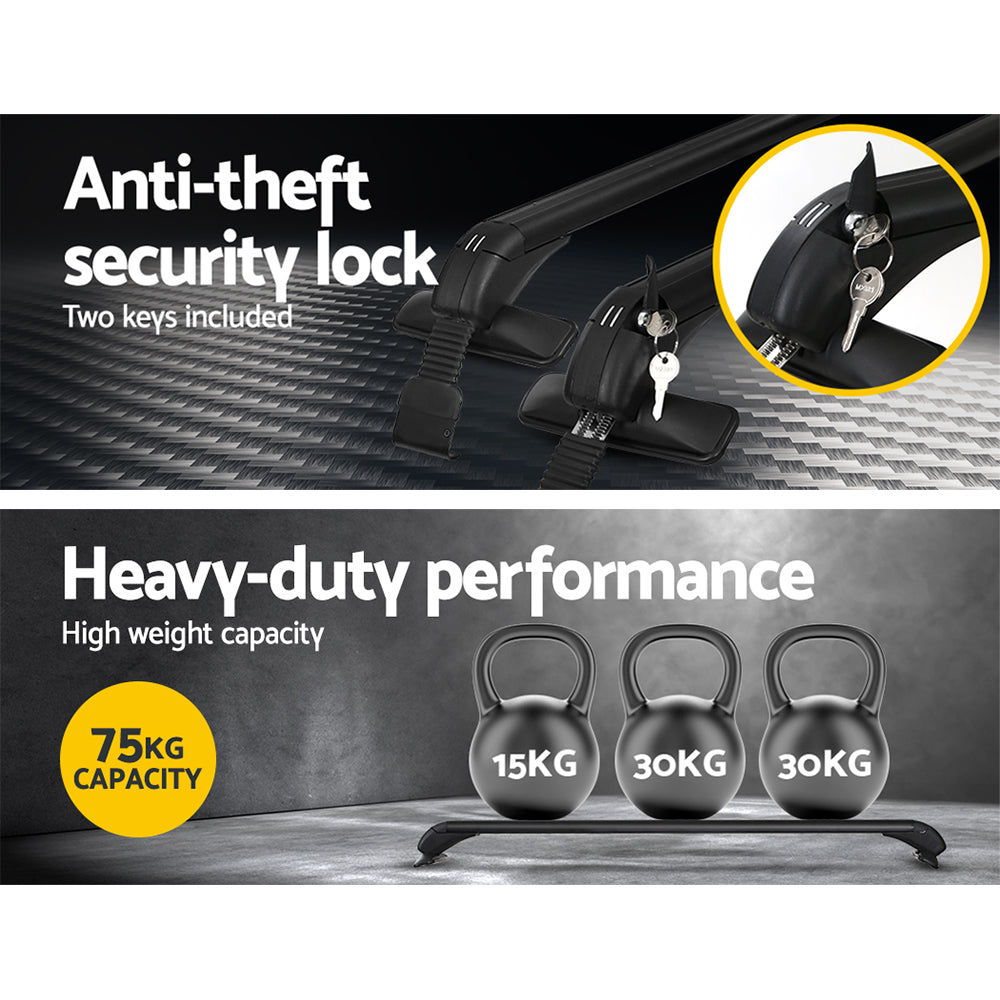 Giantz Universal Car Roof Rack Cross Bars 90Cm Aluminium Lockable 75Kg Clamps Roof Racks