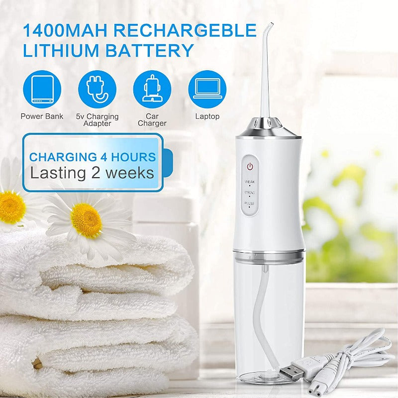 - {Powerful Battery Life USB Charging} The professional cordless oral irrigator has a powerful lithium battery which can support your oral cleaning for 20-30 days by just 4 hours of USB charging.