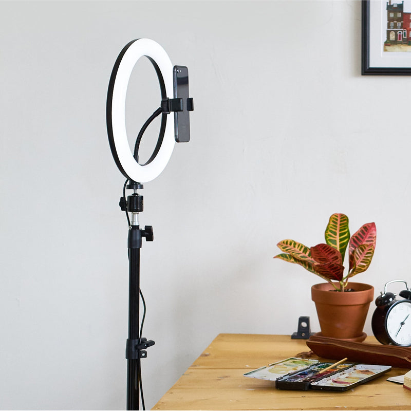 Whether You're Shooting Tutorials Hosting Zoom Meetings Or Simply Taking The Perfect Insta Pic This Lightweight And Foldable Ring Light Setup Is Made To Go Wherever You Do. It’S Quick To Assemble Stable On Any Surface Thanks To Its Iron-Weighted Base And Fully Compatible With Most Smartphones.
