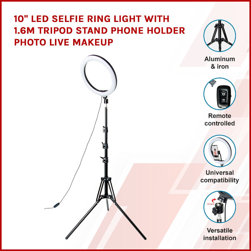 10" Led Selfie Ring Light With 1.6M Tripod Stand Phone Holder Photo Live Makeup Other Lighting & Studio