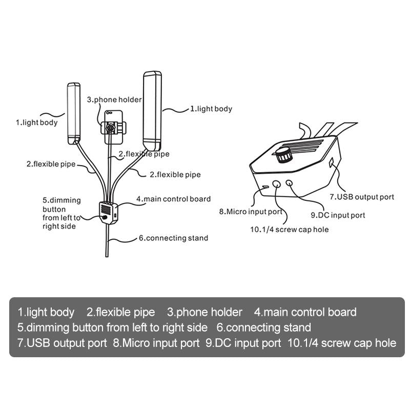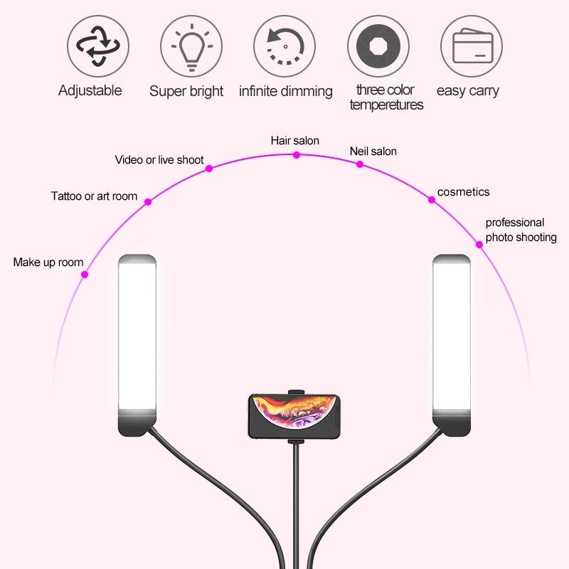 • 1 X Rk39 Tri-Colour Brightness Double Arms Fill Light With Phone Clip Black