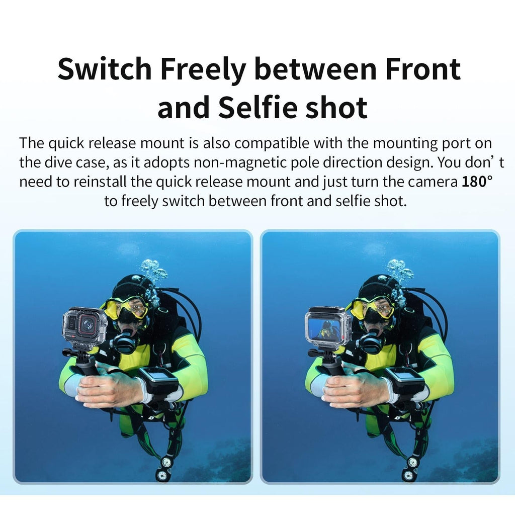 • The Quick Release Mounting Port Of The Dive Housing Is Designed With A Non-Magnetic Pole Direction. There Is No Need To Re-Disassemble The Quick Release Base; You Can Directly Turn The Camera One Hundred And Eighty Degrees To Install It Making It Easy To Realise Front Shooting And Self-Taking.