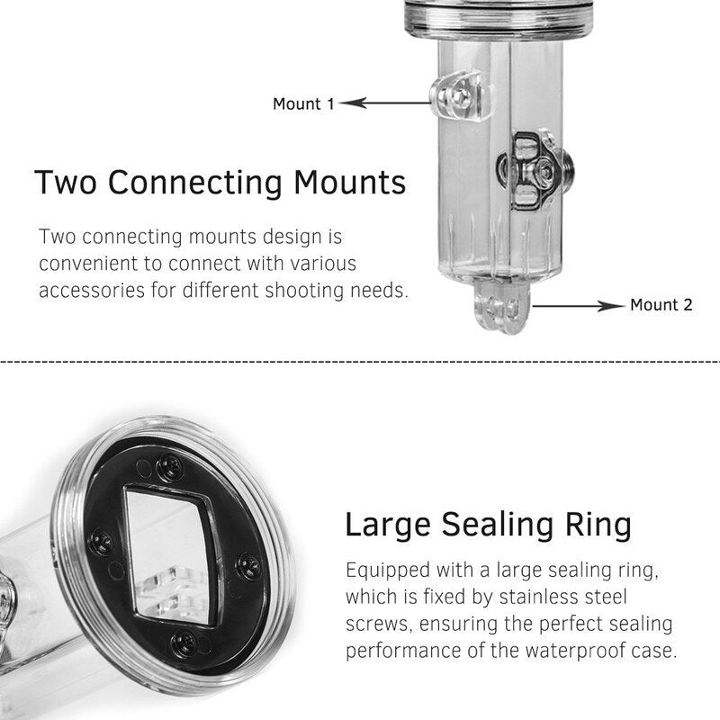 Equipped With A Large Sealing Ring Which Is Fixed By Stainless Steel Screws Ensuring Strong Waterproof Performance Sustainable For 3 Hours Diving Underwater 60 Meters.