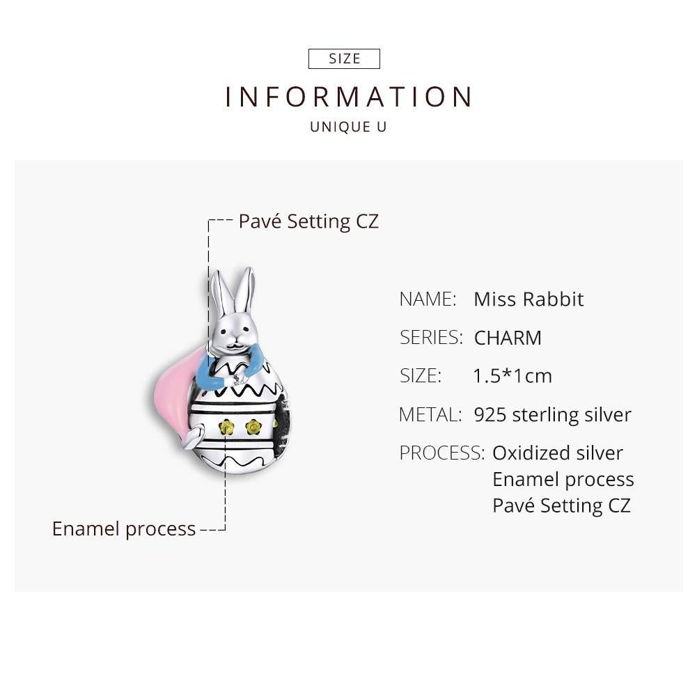925 Sterling Silver Bunny Bead Bracelet / Necklace Accessory Charms & Pendants