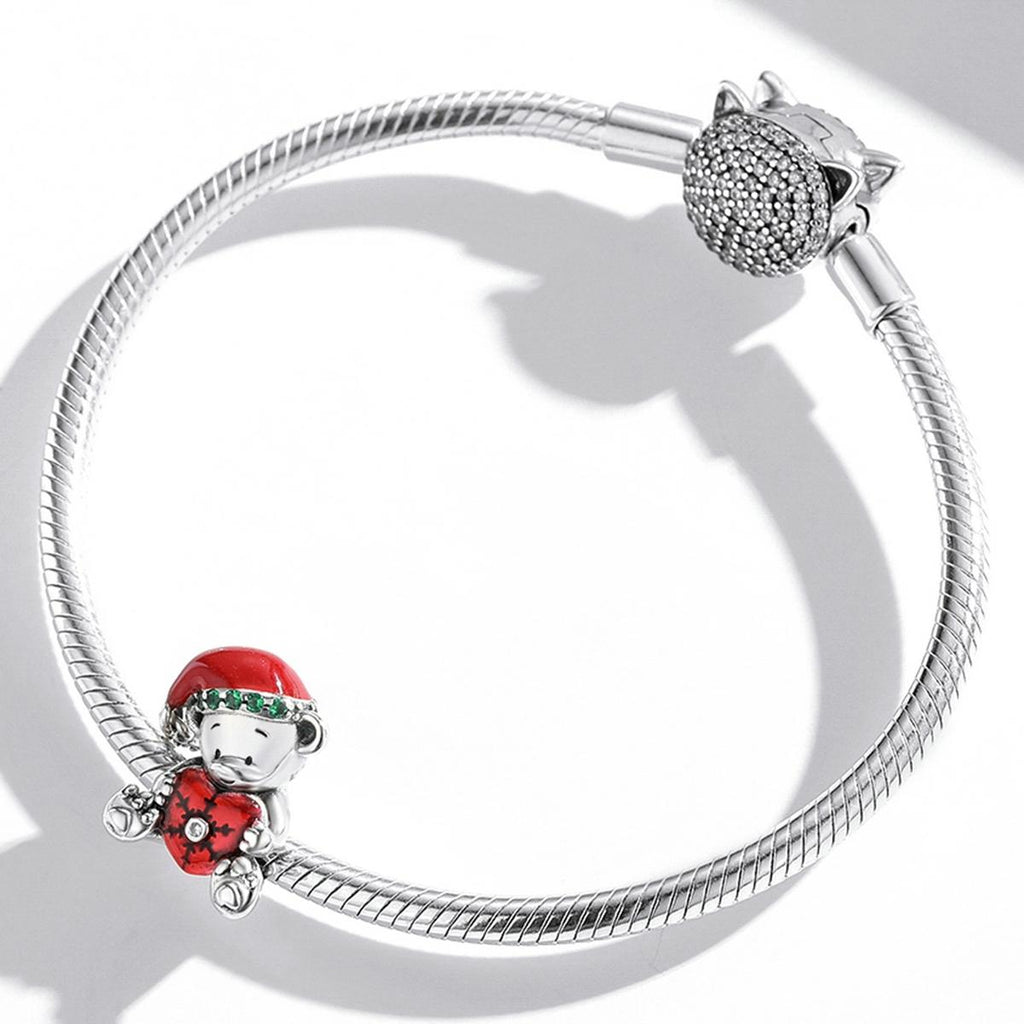 • 1 × 925 Sterling Silver Christmas Bear Charm For Diy Bracelets Or Necklaces