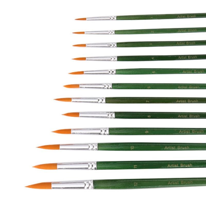12Pcs Acrylic Paint Brushes Pointed Nylon Hair Watercolor Artists Brushes