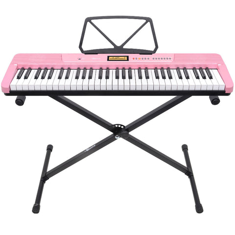 Karrera 61 Key Electronic Piano Keyboard With Led And Folding Stand In Pink Electronic Keyboards