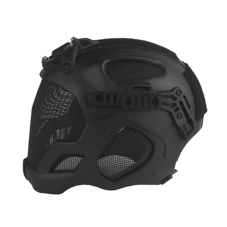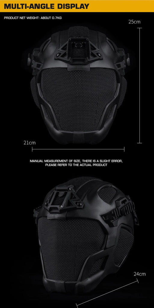 - Full Protection Tactical helmet With Steel Mesh Mask Included