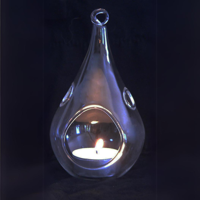 10 Pack of Clear Glass Hanging Tear Drop Tea Light Holder