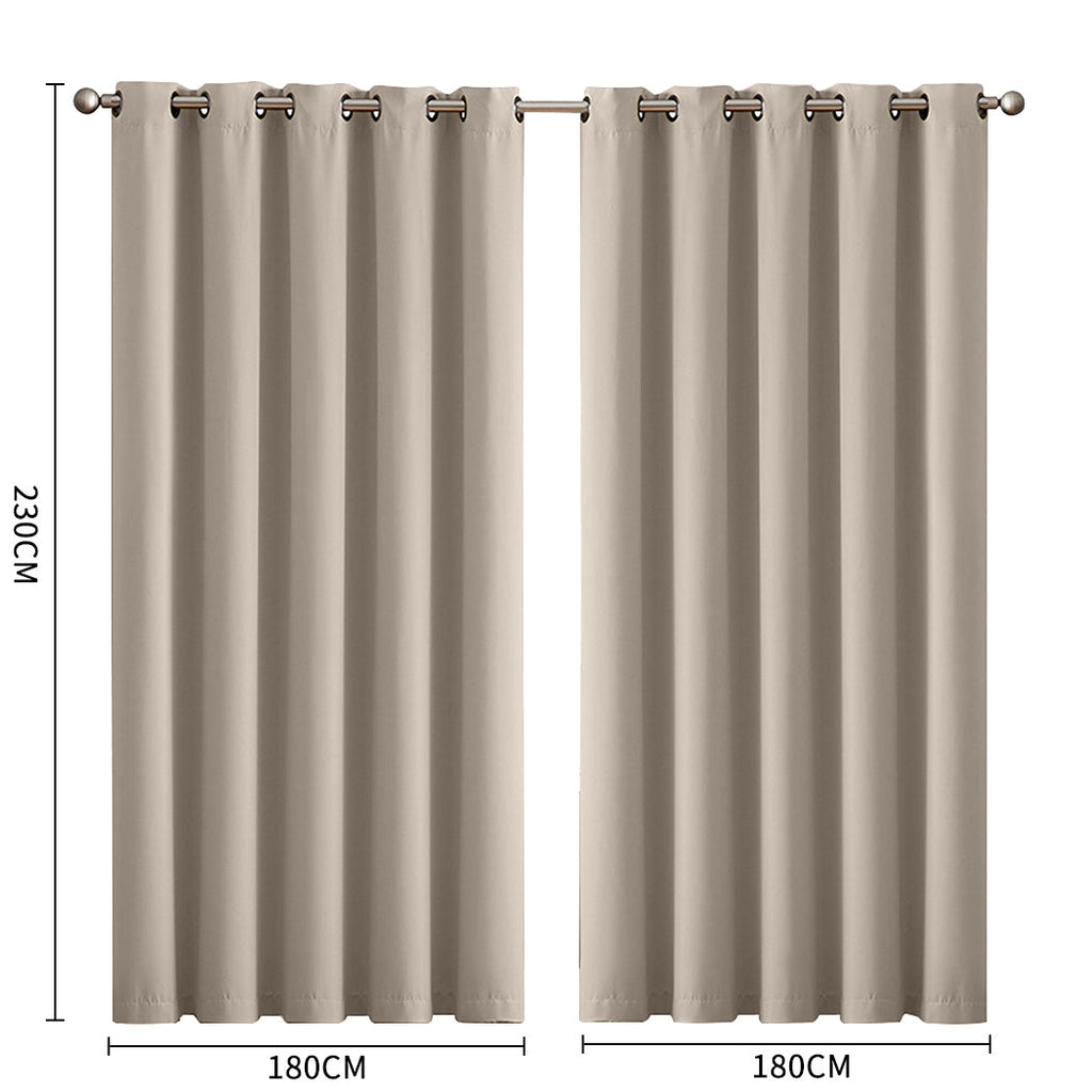 2X Blockout Curtains Panels 3 Layers Beige 180 X 230Cm
