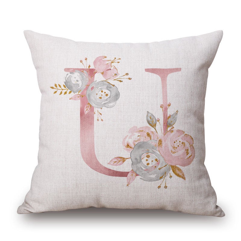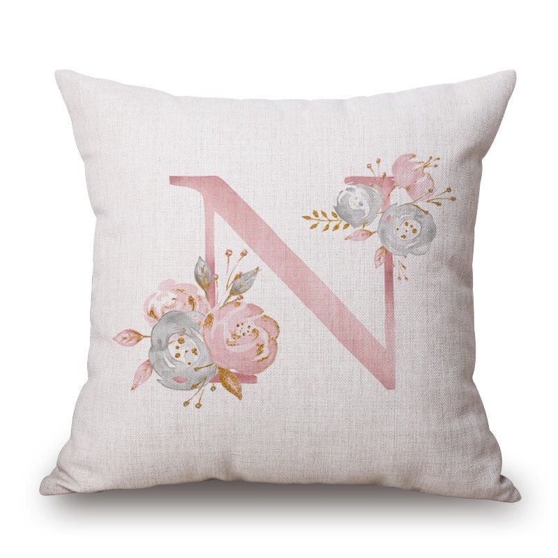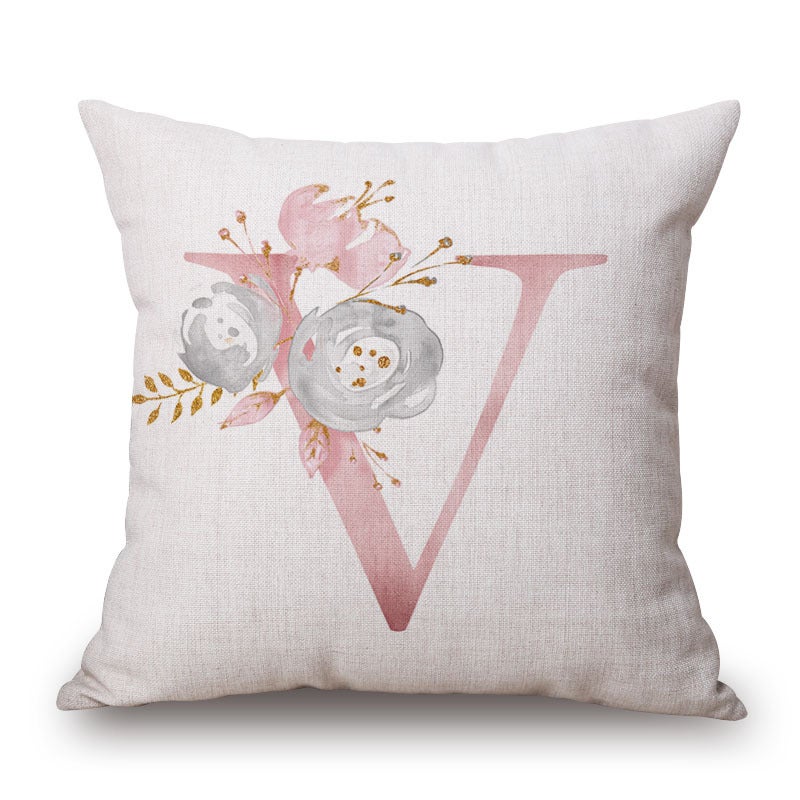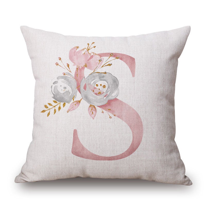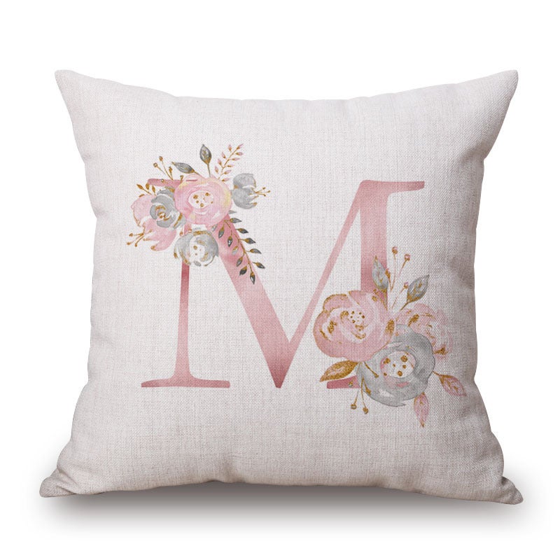 Pink Letter Flowers Pretty Cushion Cover Cushions & Decorative Pillows