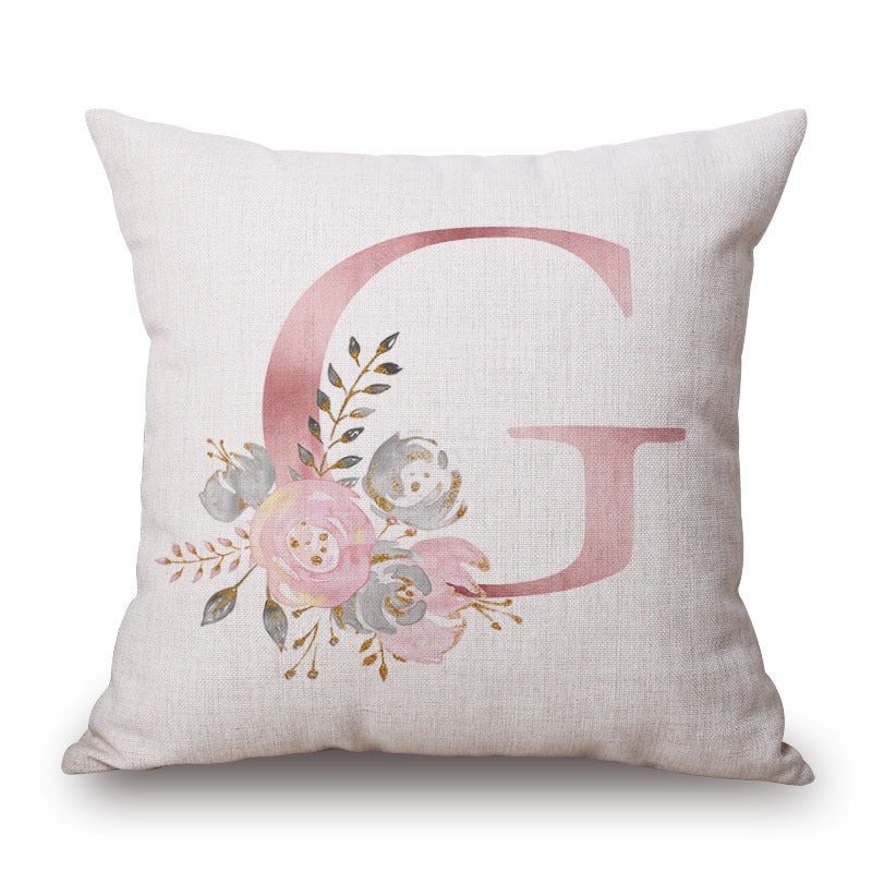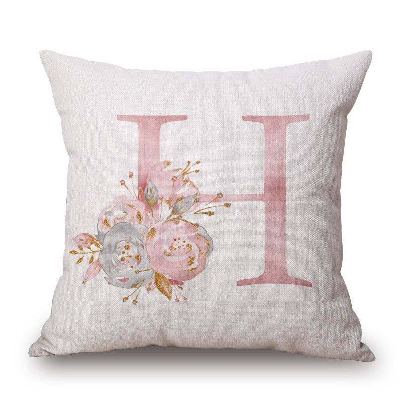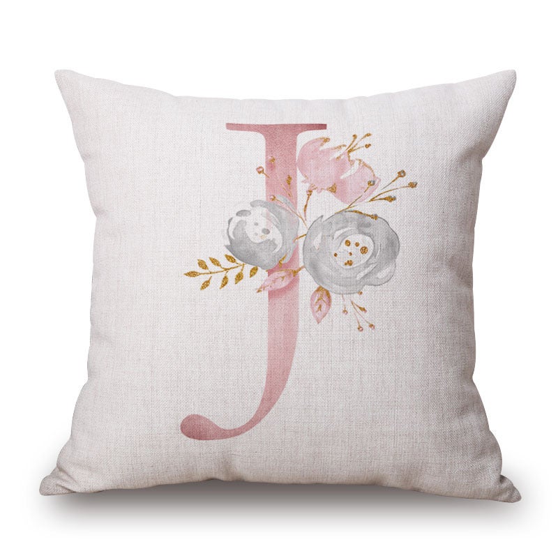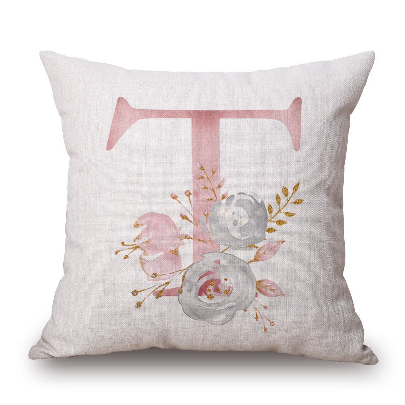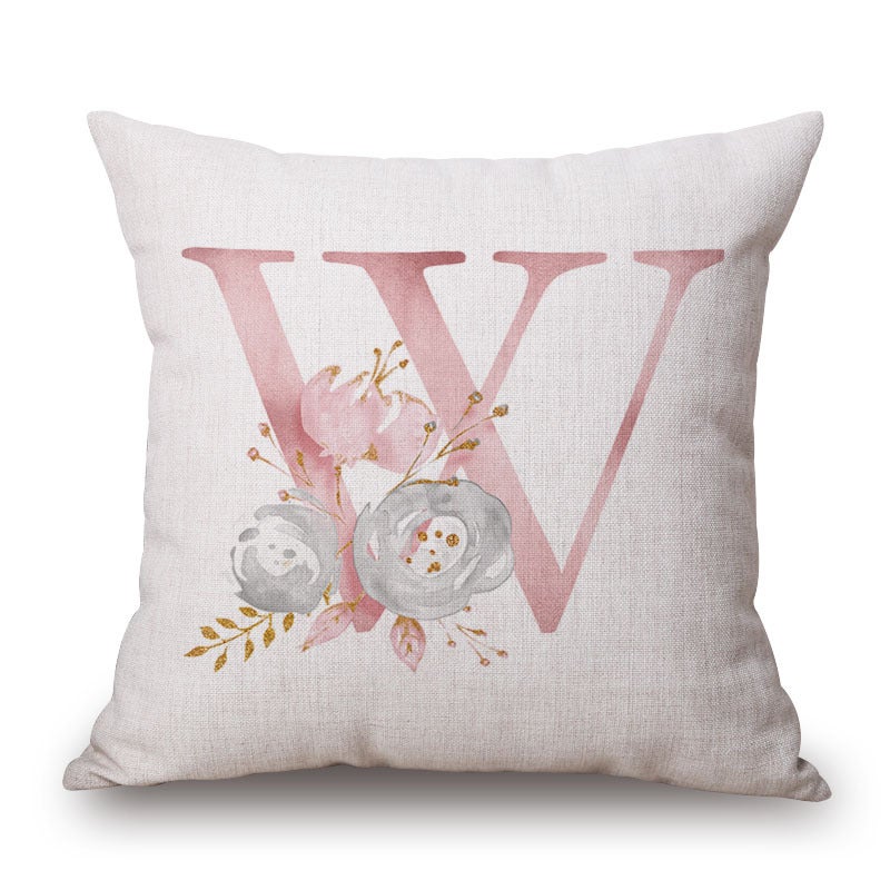 Pink Letter Flowers Pretty Cushion Cover Cushions & Decorative Pillows