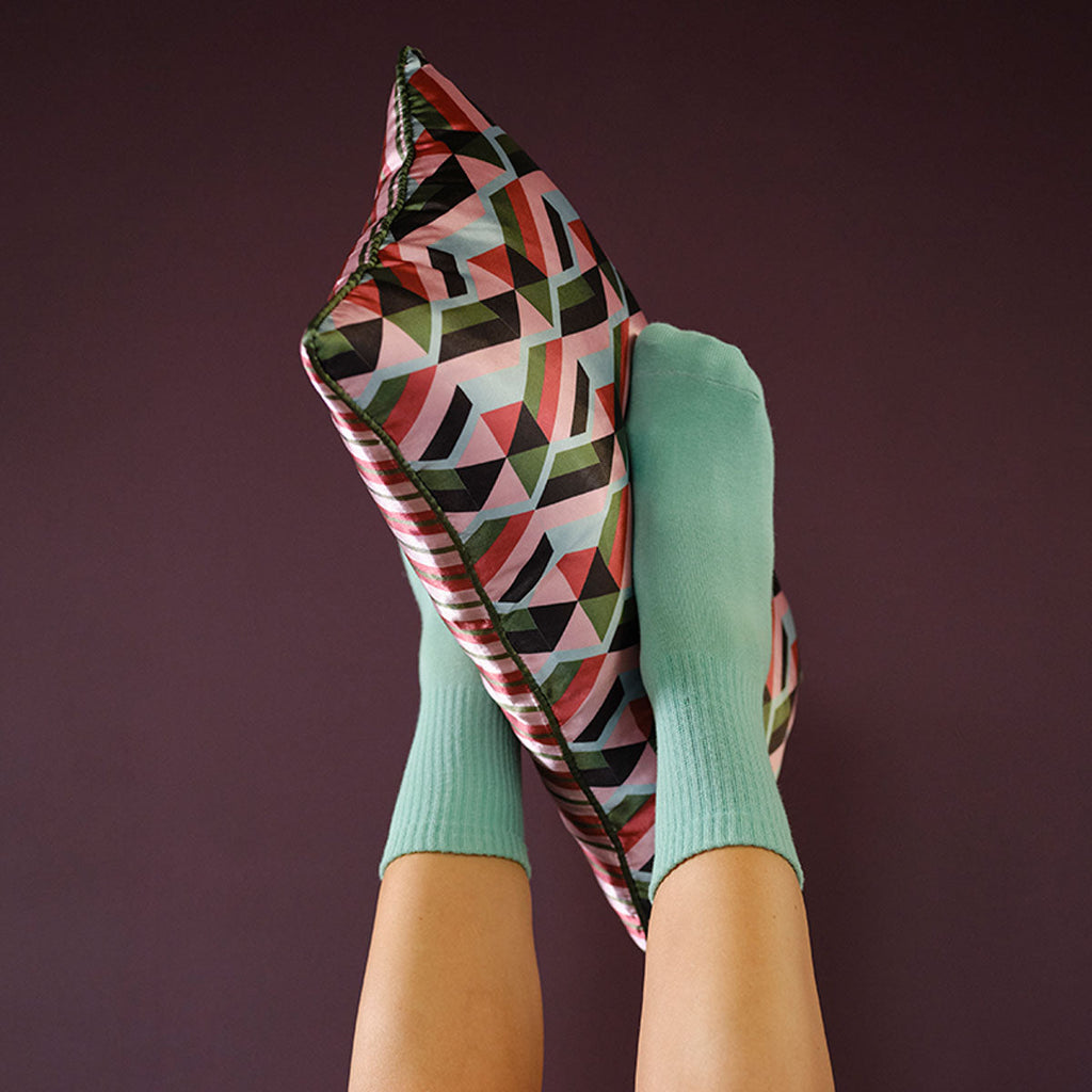 Add A Cheerful retro Vibe To Your Space With The Kaat Amsterdam Phoeby Multi Reversible Oblong Filled Cushion. Featuring A Vibrant Front Print Of Mini retro Patterns In Pink Green Sage And Black And A Colourful Striped Pattern On The Reverse This Cushion Is Perfect For Adding A Playful Pop Of Colour And Style. Made From Smooth Polyester Satin With A Durable Polyester Filling It Promises Both Comfort And Lasting Appeal.