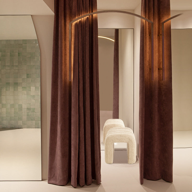 Bring Cosy Charm And Contemporary Elegance To Your Space With This Arch-Layered Stool Crafted For Both Style And Comfort In A Warm Teddy-Textured Fabric For An Inviting Feel.