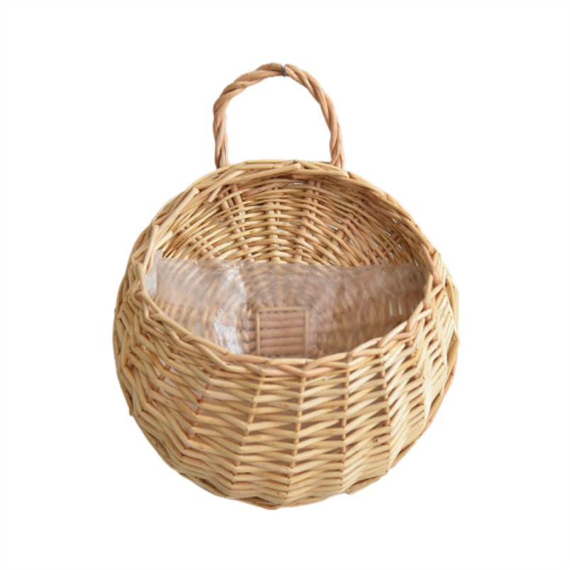 1 Set Flower Basket Handmade Weaving Multi Function Rattan Wall Fence Hanging Pot Plants Holder For Garden Beige L Planters & Vases