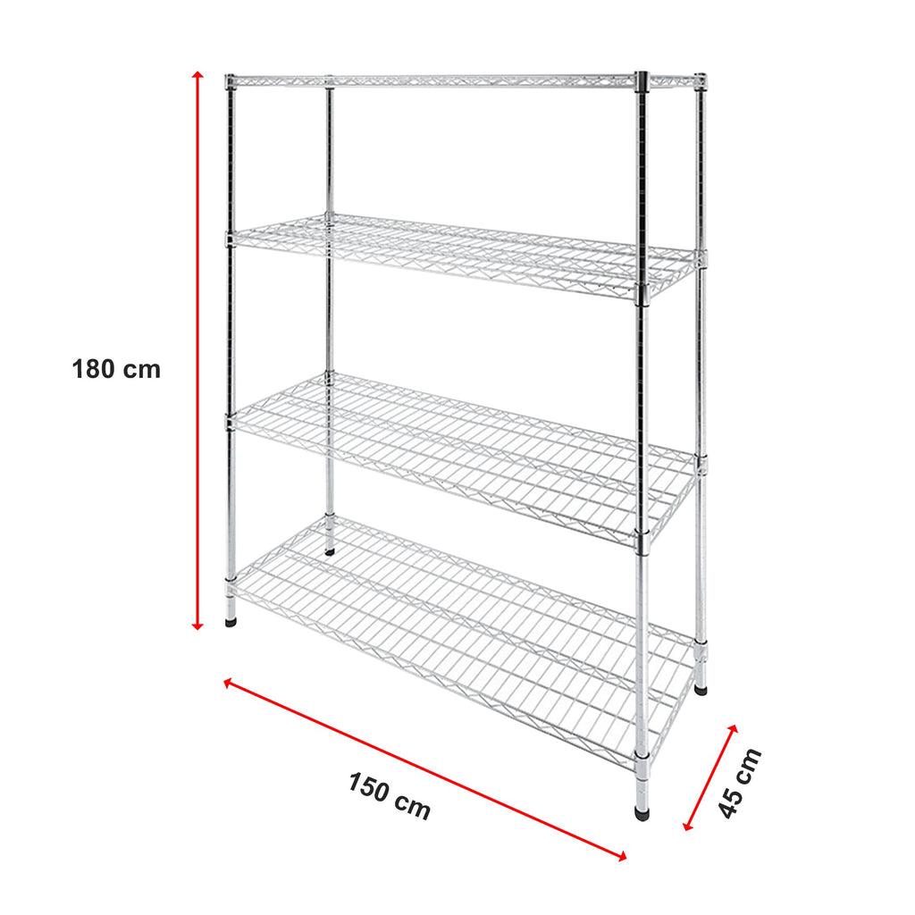 P>When It Comes To Strength And Dependability This Four-Shelf Storage Unit Excels. Crafted From Syncrosteel Plated Steel It Is Designed To Withstand The Test Of Time. The Wire Shelving Adds A Sense Of Lightness And Mobility Granting You Unmatched Versatility To Adapt To Your Ever-Changing Requirements.P>The Timeless Design Of This Four-Shelf Unit Makes It A Perfect Solution For Various Storage Needs. Whether You Need To Organize Your Belongings At Home In The Office Shop Garage Or Workshop This Unit Has You Covered. Utilize The Generous Shelves To Tidy Up Personal Items In Your Garage Or Kitchen Or Neatly Store Tools And Equipment For Easy Access And Clear Visibility.P>With Legs This Unit Ensures Both Security And Stability. You Can Customize The Shelf Height To Suit Your Specific Needs Thanks To The Shelves. The Raised Edges Of The Shelves Provide An Extra Layer Of Assurance Keeping Your Items Securely In Place As You Arrange Them.P>Features And Specifications:Ul>Li>Size:1500 X 450 X 1800MmLi>Material: Carbon Chrome Plated SteelLi> Shelves And LegsLi>Four ShelvesLi>Weight Capacity: 100Kg Per Layer/Ul>P>P>Warning Children Have Died From Furniture Tipover.Ul>Li>Always Secure This Furniture With An Anchor Device.Li>Never Allow Children To Stand Climb Or Hang On Drawers Doors Or Shelves./Ul>P>Attributes: