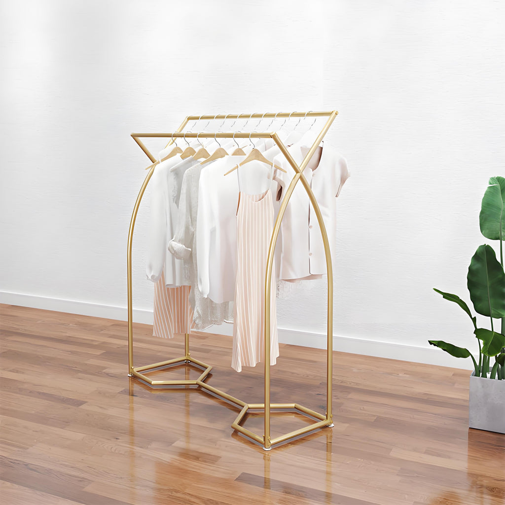 Elevate Your Space With This Premium Modern-Style Display Stand Designed With Elegance And Functionality In Mind. Crafted From High-Quality Metal And Finished In Luxurious Gold This Display Rack Is The Perfect Blend Of Durability And Style. Whether Placed In Your Bedroom Walk-In Closet Or Retail Clothing Store It Showcases Garments Beautifully While Adding Sophistication To Any Setting.