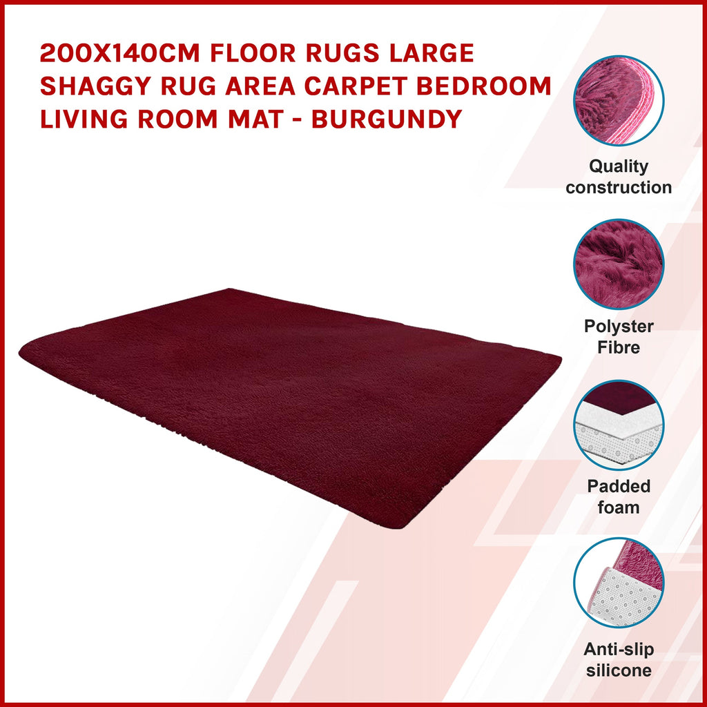 200X140cm Floor Large Shaggy Area Carpet Bedroom Living Room Mat Burgundy Rugs