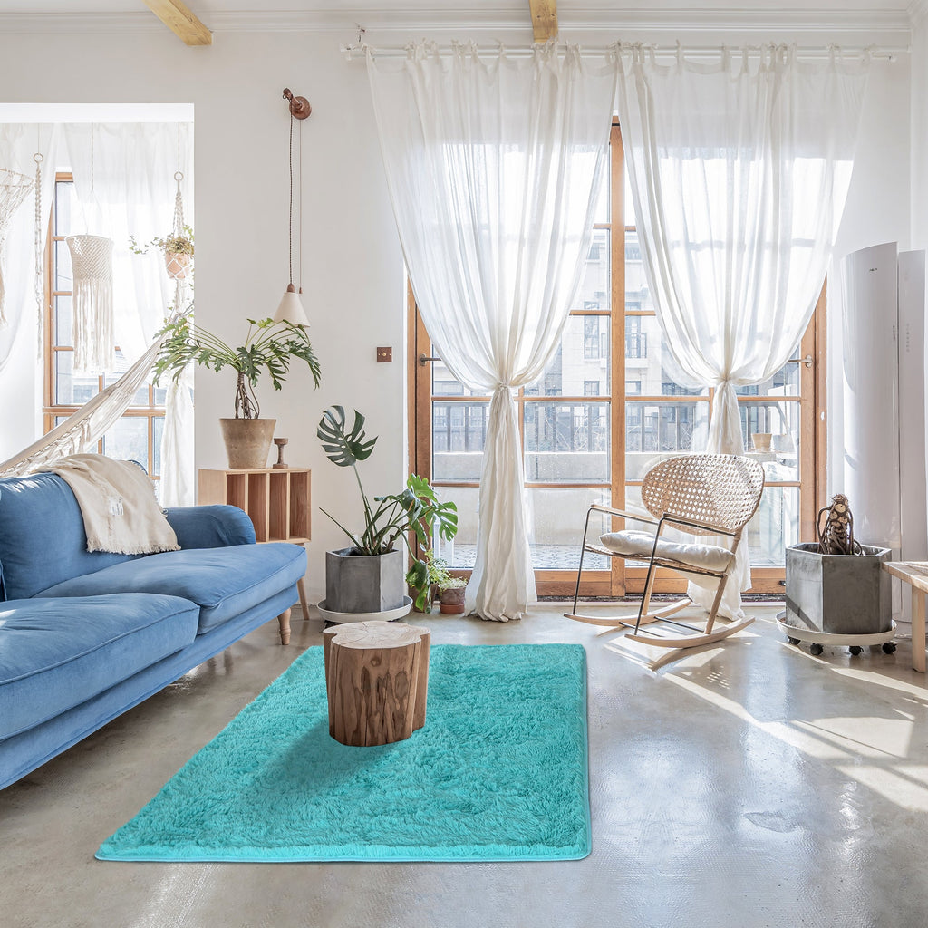 200X140cm Floor Large Shaggy Area Carpet Bedroom Living Room Mat Turquoise Rugs