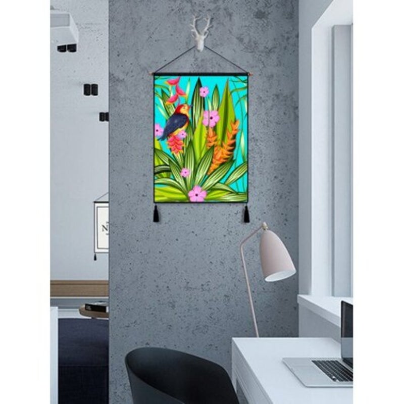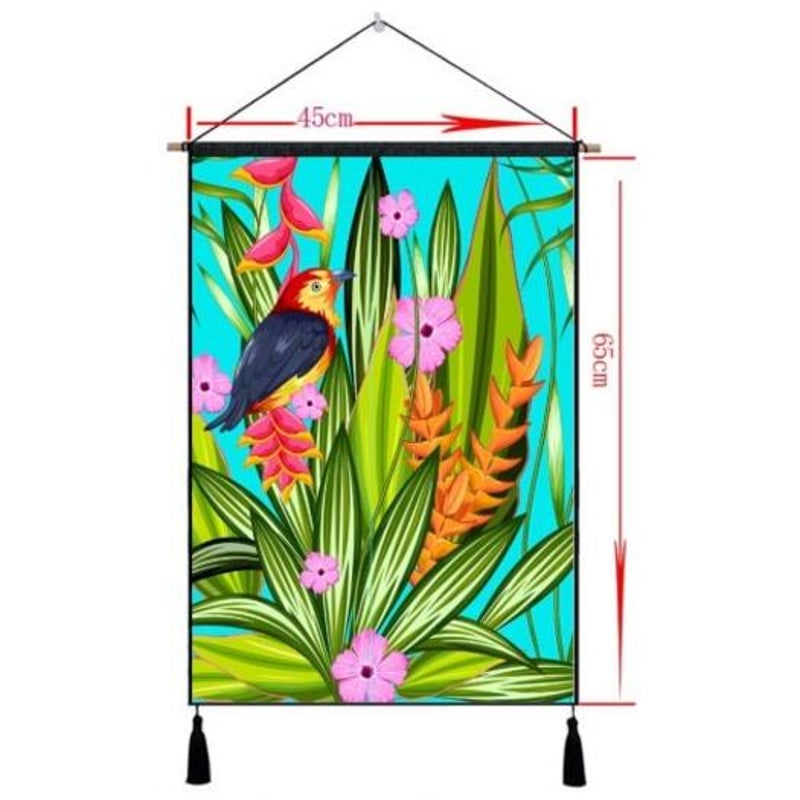 Bird Flower Leaves Print Tassel Hanging Painting Beetle Green 1Pc1826 Inchno Frame Wall Hangings