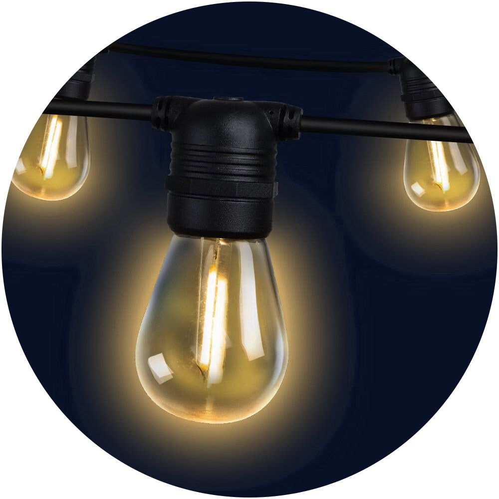 Our Festoon String Lights Are Great Not Only For Wedding And Birthday Parties Or Special Events But Also For Creating A Warm Inviting Ambience With Its Bright And Mellow Glow. Suitable For Both Indoor And Outdoor Use Its Ip44 Rating Means That It Can Be Used In The Rain And All Weather Conditions. Each Bulb Draws A Very Low Voltage And Is Placed 90Cm Equally Apart From Each Other Throughout Its 23M Length For An Even Distribution Of Illumination And Brightness. Not Least The Each Bulb Has A 20000 Hours Lifespan So That You Can Get To Use The String Lights For Quite A While.